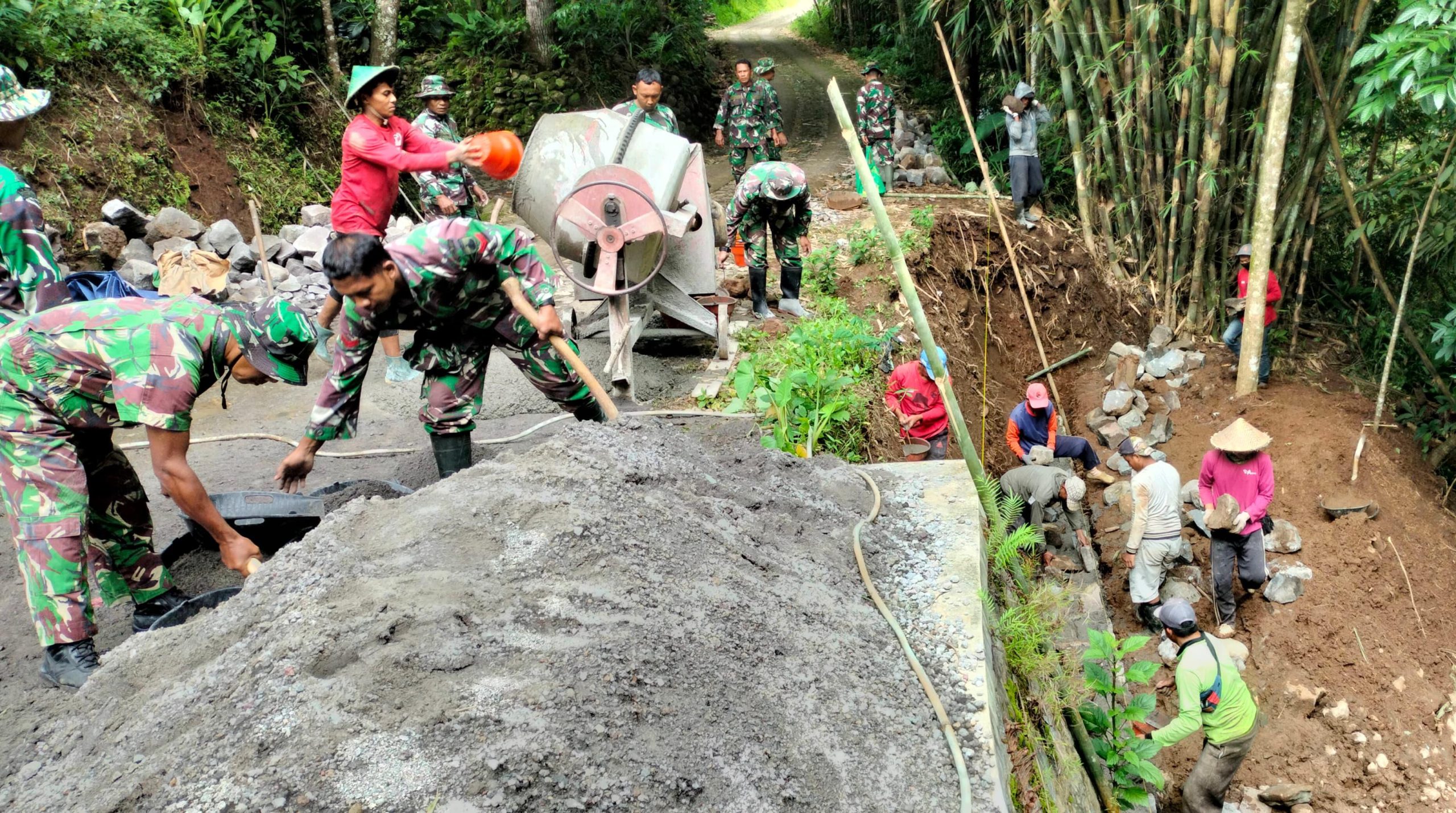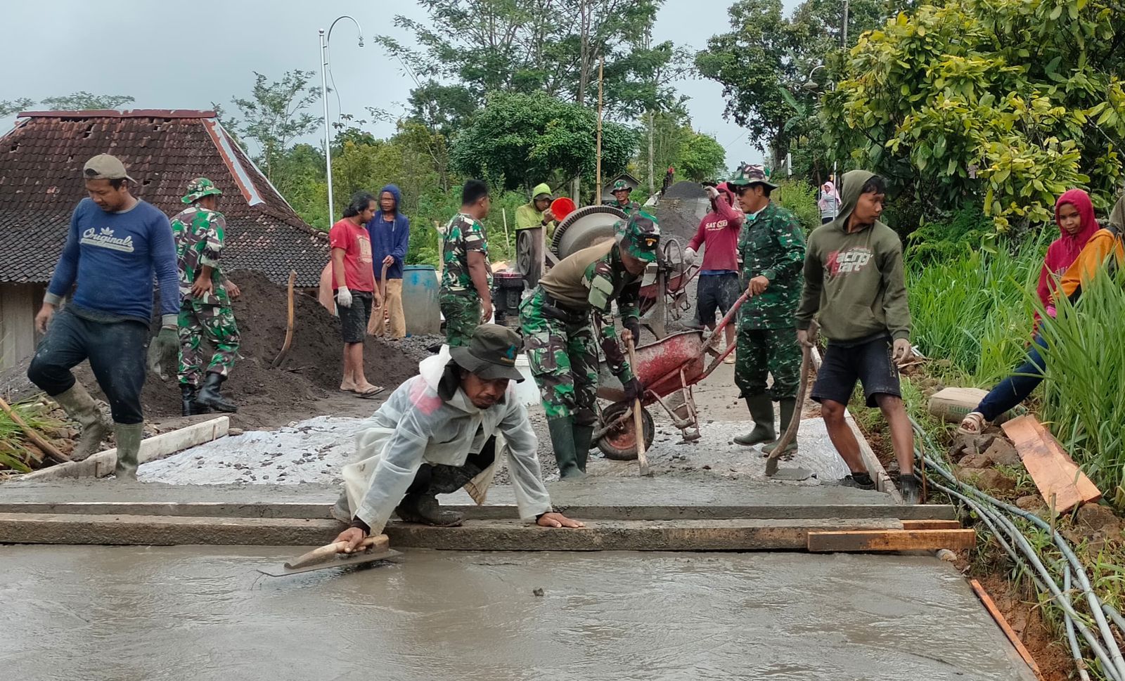 Wonogiri- Sakti.i.news.site.Kemanunggalan prajurit TNI dari Kodim 0728/Wonogiri bersama masyarakat Desa Kembang Kecamatan Jatipurno, dengan penuh semangat tanpa menghiraukan teriknya panas maupun hujan patut diapresiasi.