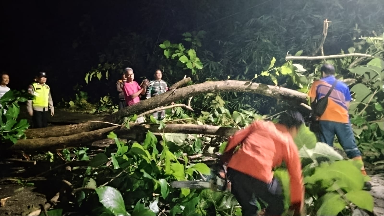 Pohon Tumbang Tutup Jalan Simo–Klego, Babinsa dan Warga Bergerak Cepat Selamatkan Akses