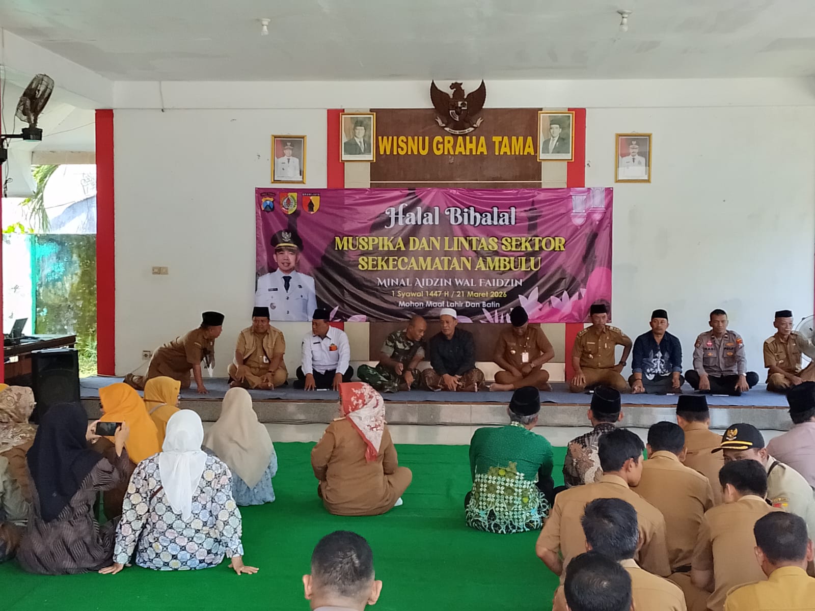 Jember,-Sakti.i.news.site. Muspika kecamatan Ambulu Jember bersama tokoh masyarakat dan tokoh agama menggelar kegiatan Halal Bihalal, sebagai upaya memperkuat sinergi dan kebersamaan antar pegawai pasca perayaan Idul fitri 1447 H yang digelar di kantor kecamatan Ambulu Jember (Senin 30/03/2027).