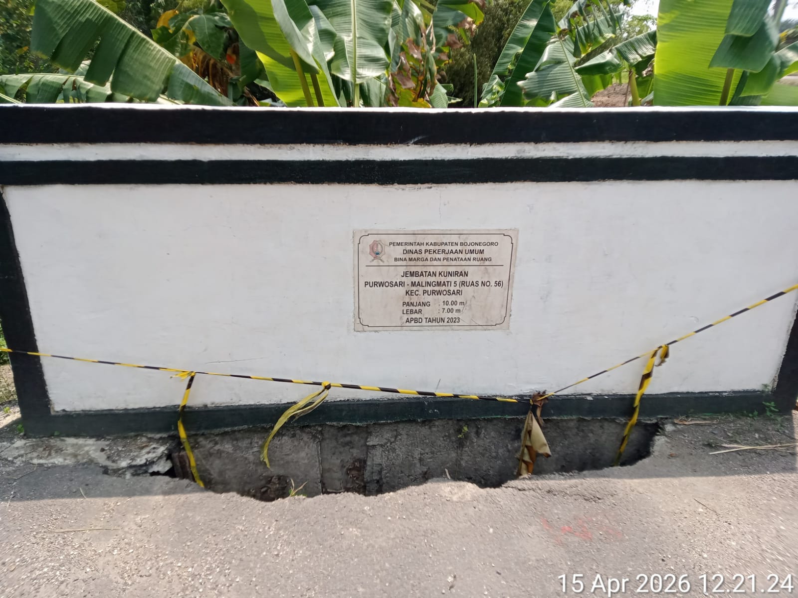 Bojonegoro –sakti.i-news.site – Kondisi memprihatinkan terlihat pada jembatan penghubung di Desa Kuniran, Kecamatan Purwosari, Kabupaten Bojonegoro. Rabu. 15/04/2026
