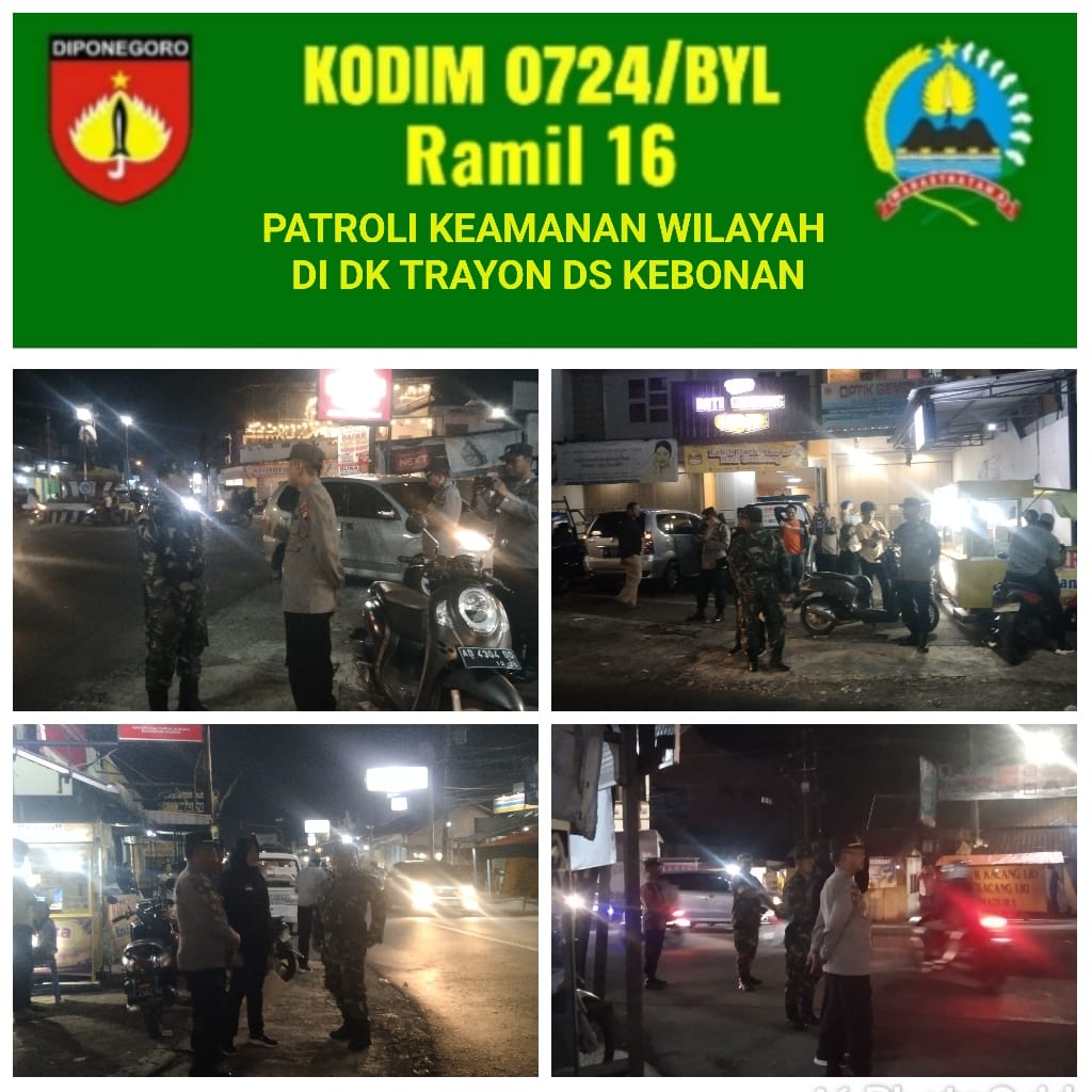 Boyolali-Sakti.i.news.site.Dalam rangka menjaga keamanan dan ketertiban wilayah, anggota Koramil 16/Karanggede Kodim 0724/Boyolali melaksanakan kegiatan patroli malam pada pukul 20.30 hingga 21.45 WIB. Kegiatan tersebut dipimpin oleh Babinsa Kebonsari, Serka Sutarto, bersama Bhabinkamtibmas, Bripka Agung W, (22/04/2026)