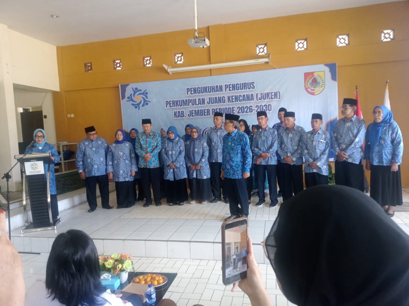 Bertempat di aula Perwakilan Badan Kependudukan dan Keluarga Berencana (BKKBN) Propinsi Jawa Timur di Jember Jl.Kalimantan No.28 Krajan Timur Kelurahan Sumbersari Kecamatan Sumbersari berlangsung kegiatan pengukuhan pengurus sekaligus halal bihalal Perkumpulan Juang Kencana (JUKEN) yang dihadiri perwakilan dari 31 Kecamatan yang ada di Kabupaten Jember, Rabu 22 April 2026.